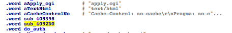 The cgi_commit() function gets called by sub_4052d0(), which is the output function for the apply.cgi mime handler (I explained previously how the mime handler table works).